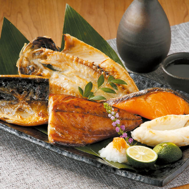 さば塩ハーフ、さばみりんハーフ、あじ塩、ふぐ、さけ 各2枚