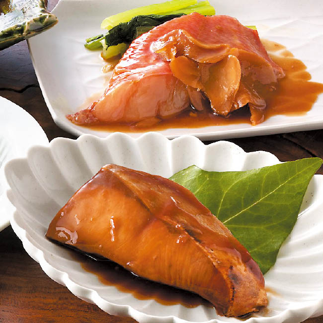 ぶり照焼90g×2、のどぐろ煮付85g×2、さばと南高梅煮付110g×2、黄金生姜と金目鯛煮付100g×2