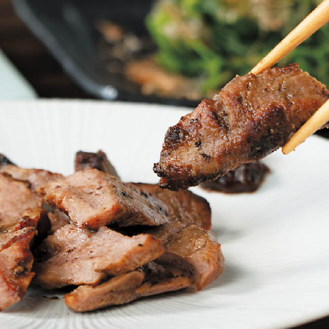 陣中こだわりの「二段階熟成(塩麹熟成+低温熟成)」製法により、柔らかく仕上げ素材本来の濃厚な旨味を引き出した牛タンを、職人が一枚ずつ丁寧に焼き上げました。自然解凍で焼き上げた瞬間の香ばしさを感じていただくことができる、牛タンです。
