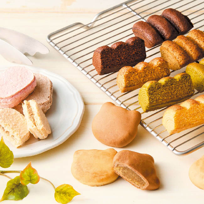西鎌倉バウム×4(プレーン、抹茶、紅茶、ショコラ×各1)、シェフのダックワーズ×5(ヘーゼルナッツ、塩キャラメル×各2、ストロベリーバニラ×1)、にしかまさんぽ×5(湘南ゴールド×3、キャラメル×2)