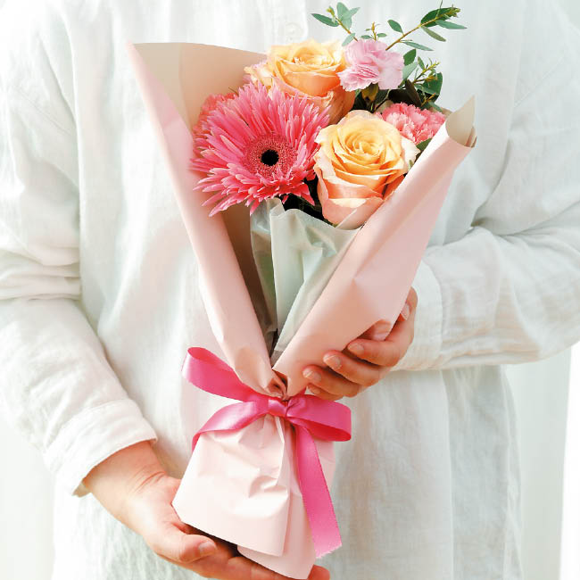 【ブーケ】ヤオコーの花はしっかり長持ち。感謝の気持ちを華やかな花束で。やさしい色合いで、気持ちが伝わる花束。