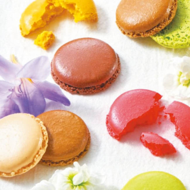 ダロワイヨこだわりのマカロンコック(生地の部分)。アーモンドの豊かな香りはそのままに、サクッと焼きあげました。