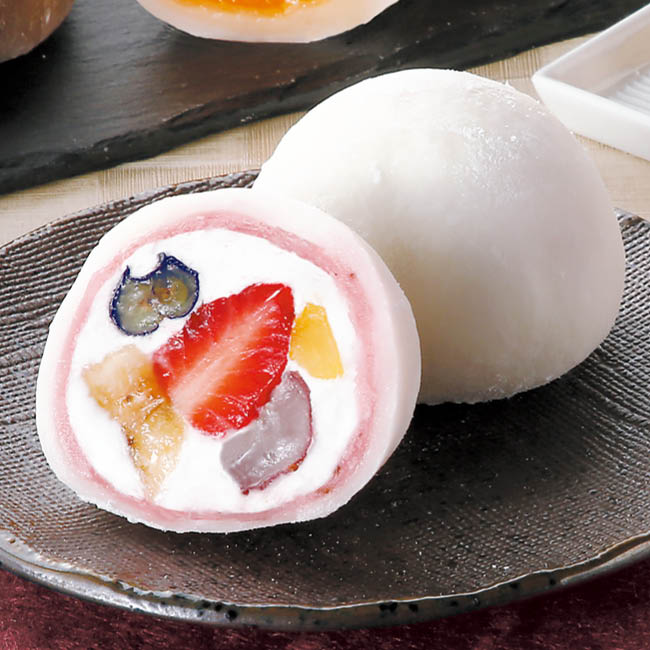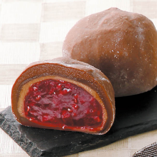 5種類の果物を包んだ「祇園ぽっちり」と、甘味と酸味が絶妙なみかんをまるごと包んだ「みかんの福」、甘酸っぱいラズベリーをジュレに閉じ込め、ビターなチョコクリームと合わせた「ラズベリーの福」の詰合せ。
