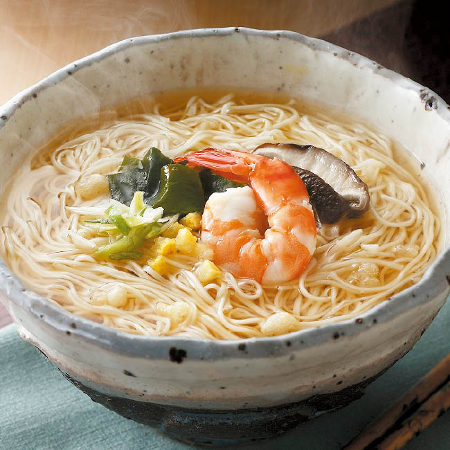 揖保乃糸でつくった即席麺です。お湯をかけて3分で温かいにゅう麺をお召し上がりいただけます。