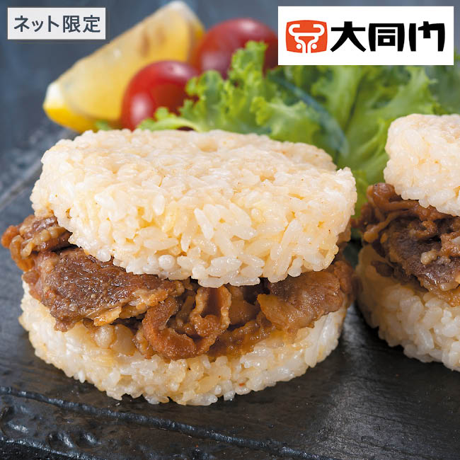 創業1968年の老舗焼肉店大同門監修のライスバーガー。秘伝のたれで味付けしたお肉を、国産米使用のふんわりと仕上げたライスパテでサンドしました。