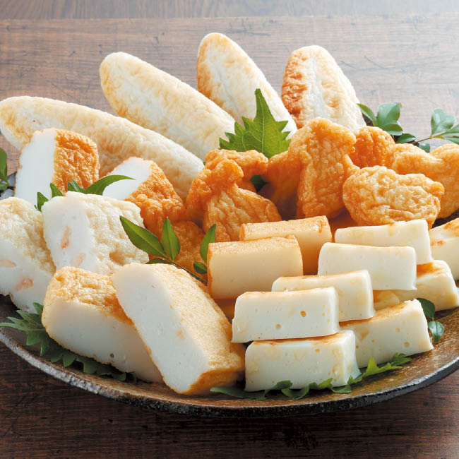 魚の風味を活かした笹かまぼこ・揚げかまぼこに、ふっくら食感が特徴のぷちあげと蒸しかまぼこの淡雪チーズが入った詰合せです。