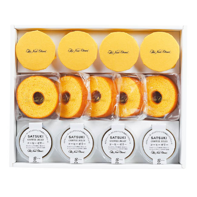バウムクーヘン(Sサイズ)×5コ、マンゴープリン・SATSUKIコーヒーゼリー各4コ