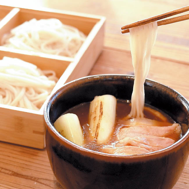 埼玉で昔から親しまれている肉汁うどん。埼玉地粉100%と埼玉県産の豚バラ肉・深谷ネギのおつゆ。