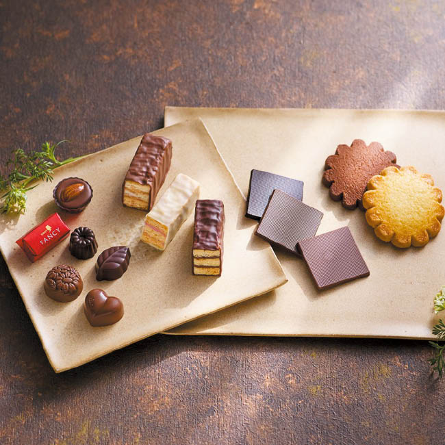 ファンシーチョコレート、ミルフィーユ、クッキーなど、選んで食べる楽しさを贈るギフトセットです。