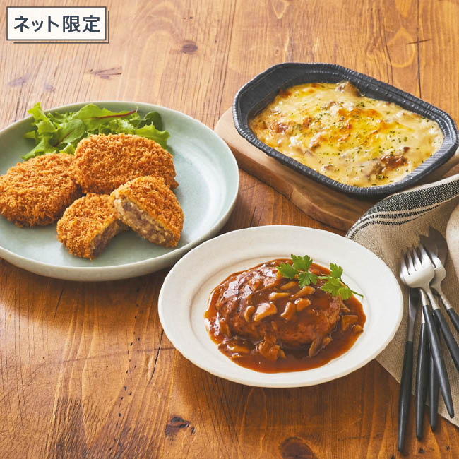 黒毛和牛のビーフドリア260g×2P、牛肉100%ハンバーグ デミグラスソース180g×2P、旨みに感動 ビーフコロッケ 3個入り 180g×1P