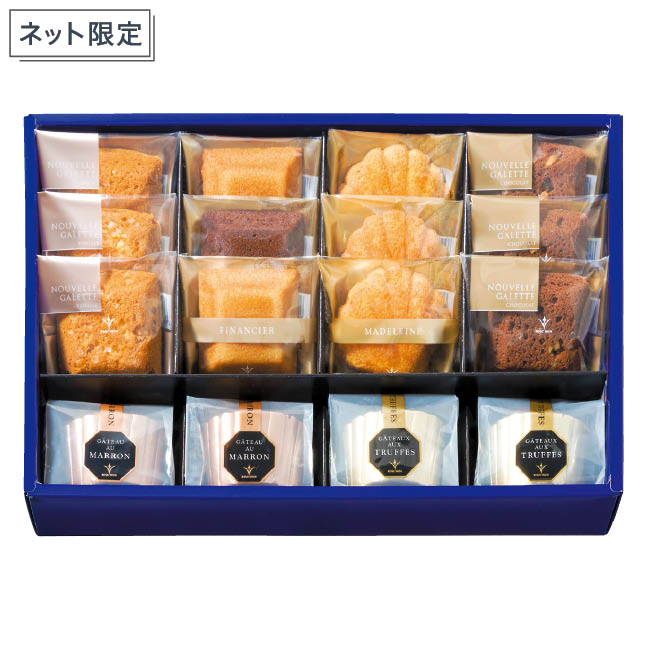 トリュフケーキ×2、ガトー・オ・マロン×2、マドレーヌ×3、フィナンシェ×2、フィナンシェ・ショコラ×1、ヌーヴェルガレット(バニラ)×3、ヌーヴェルガレット(チョコ)×3