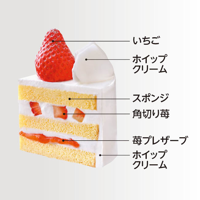 角切り苺と果肉感のある苺プレザーブをそれぞれサンドしました。乳味豊かなクリームが特徴のクリスマスケーキです。