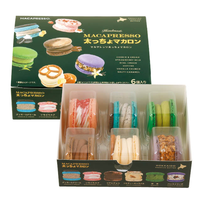 北海道産発酵バターをたっぷり使用した贅沢な6種の太っちょマカロンです。