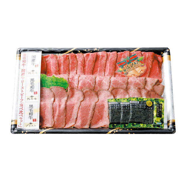 国産牛モモ・黒毛和牛モモ・黒毛和牛バラ 各80gずつ盛合せ