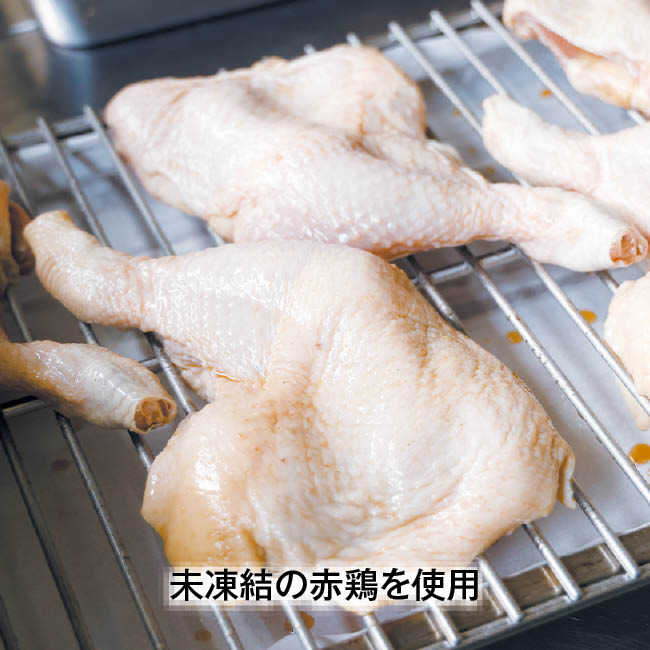 未凍結原料を手間を惜しまず二度焼きで。一回目はじっくり時間をかけて、二回目は高温でパリッと焼き上げ!
