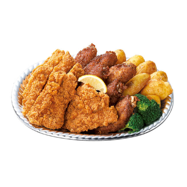 骨なしフライドチキン、手羽先からあげ、皮つきポテト トレーサイズ:274×199mm