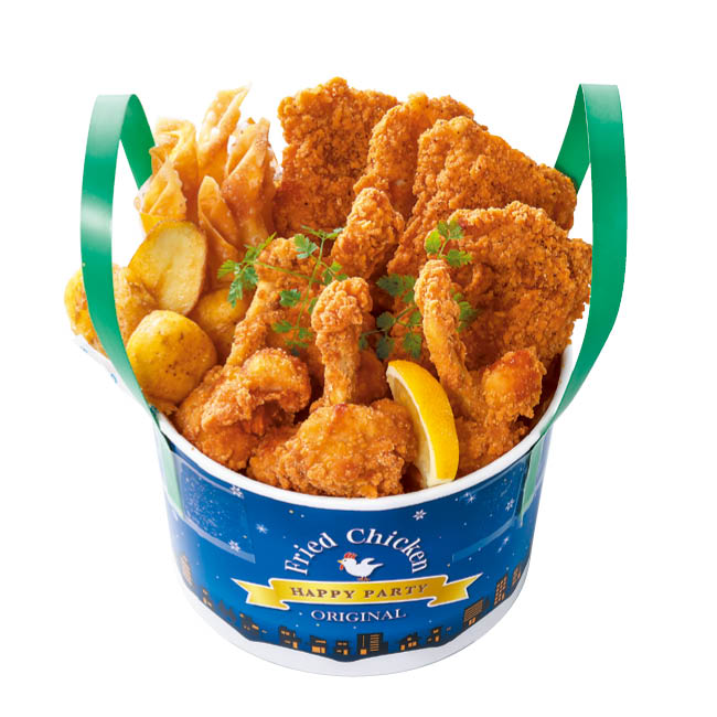 お子様も食べやすいフライドチキンと食べ応えのあるチューリップからあげ。骨なしフライドチキン、手羽元チューリップからあげ、サクサクチーズ揚、皮つきポテト 4人前