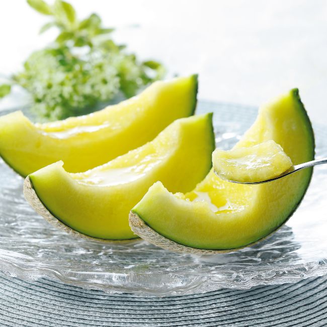 果物の王様といわれるマスクメロンの中でも最高の名を冠されているクラウンメロンになります。芳醇な甘い香りと上質なさわやかな甘みが特徴です。