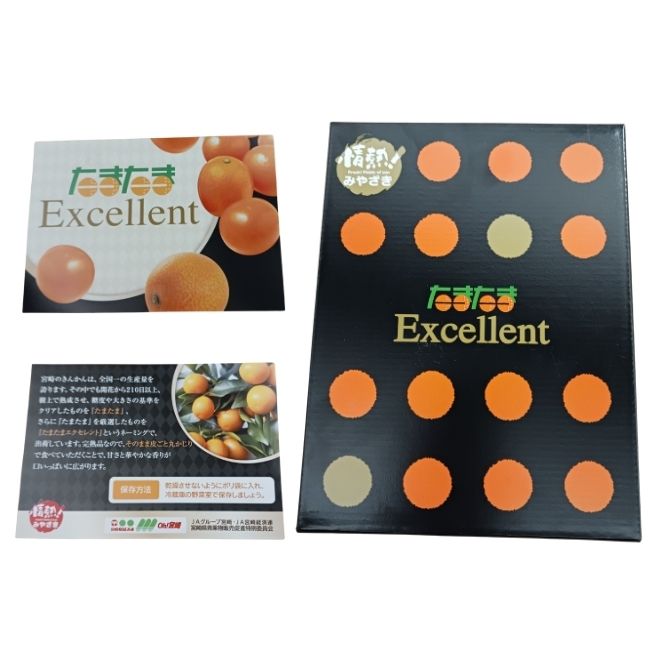 宮崎県産のブランドきんかん「たまたま」の中から、さらに厳選し2Lサイズの大粒、糖度18度以上の甘さ保障のプレミアム品。皮ごと丸かじりできる、濃い甘みと香りが特徴。