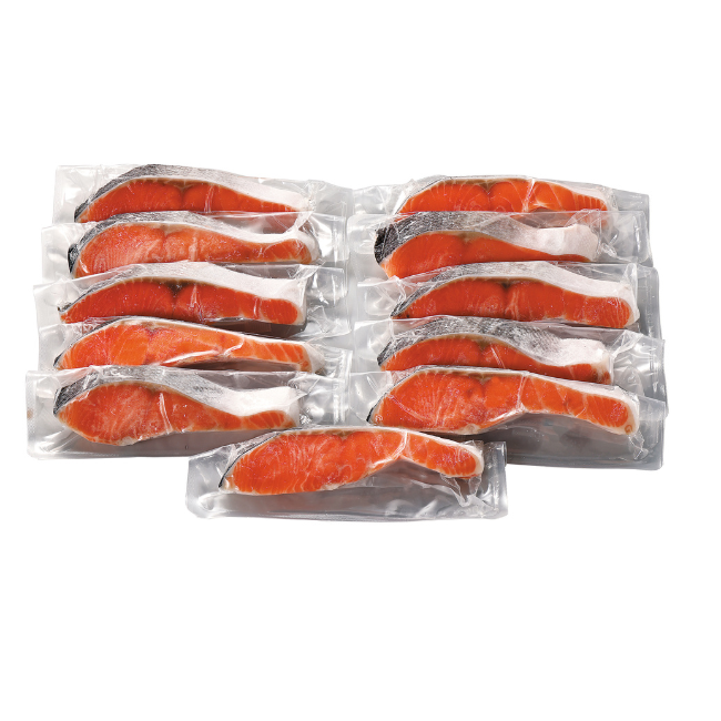 宮城県にて水揚げ、加工した定塩銀鮭の切身です。脂ののった銀鮭がたっぷり11切入ってお買い得。