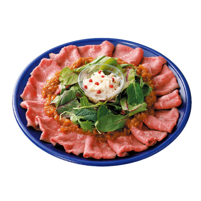 ローストビーフ150g ツナマスタードポテト60g シャリアピンソース45g ベビーリーフ10g ※坂戸泉店・川島店・富士見羽沢店・所沢松井店・大宮上小町店・みつわ台店は原料のローストビーフが異なります。