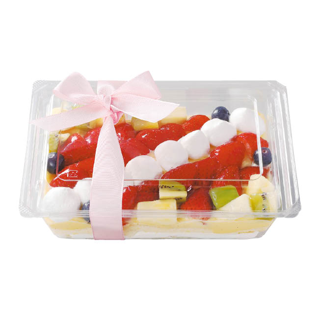 スポンジとホイップクリーム・カスタードを重ね合わせ5種のフレッシュフルーツを盛り付けたカップデザート。いちごをふんだんに使った母の日限定。