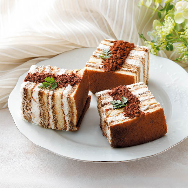 マスカルポーネのコクとコーヒーのほろ苦さ、マスカルポーネクリームとスポンジを幾重にも重ね贅沢な8層仕立て。一口ごとに味わいが広がるご褒美スイーツ。