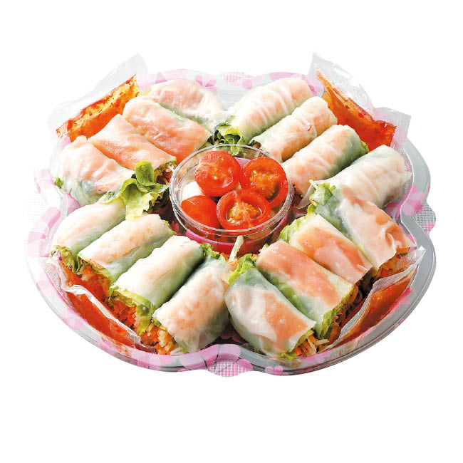 海老生春巻・サーモン生春巻・トマトカプレーゼ(バジルソース) トレーサイズ:250×250mm