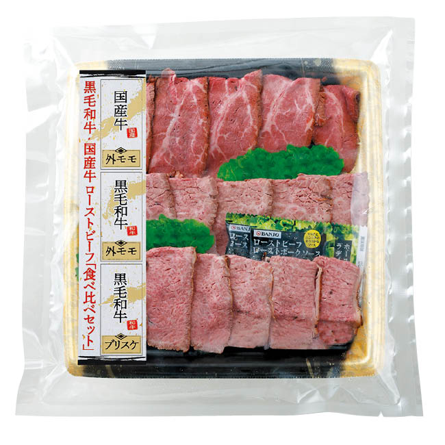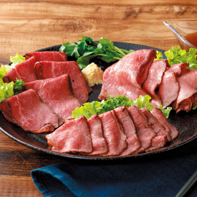 3種の風味豊かなお肉を食べ比べ。柔らかく旨み豊かなローストビーフのセットです。部位による味わいの違いをご賞味ください。