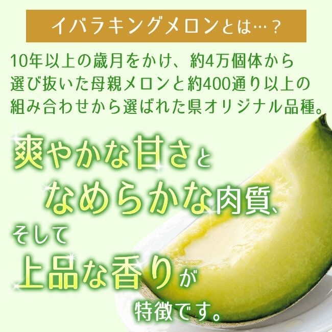 茨城で生まれたオリジナル品種です。爽やかな甘さと滑らかな肉質、上品な香りが特徴的な青肉メロンです。見た目がわけありですが美味しさそのままです。ご家庭用にどうぞ。