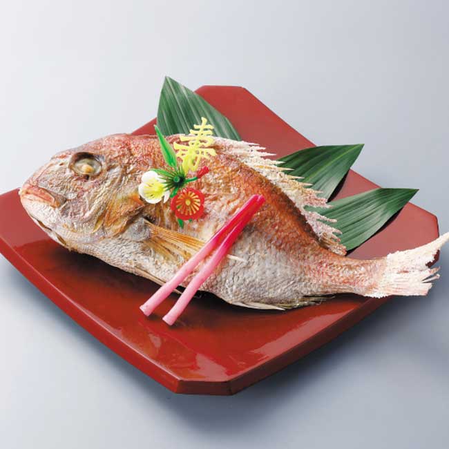 お食い初めやお祝い事に天然真鯛の姿焼き。