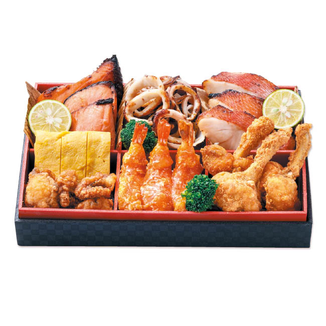 惣菜人気の西京焼と大海老チリソースの迎春盛合せ